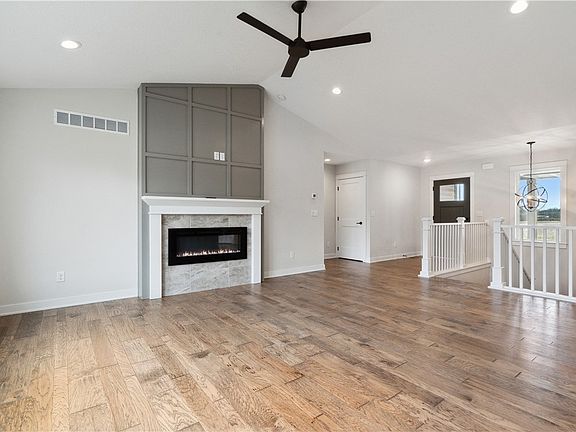 Wow, prepare to be impressed with Happe Homes Charlotte ranch plan situated on a lot with no houses directly behind you! Walking in the front door you will be greeted by a beautiful switch back staircase and an open floor plan concept with a thoughtfully laid out family room, kitchen and dinette space. The family room features a wall of windows, vaulted ceilings, floor to ceiling trimmed out fireplace and hard surface flooring that flows into the kitchen and dinette space. The kitchen showcases beautiful two tone cabinets, large island, tile backsplash and a pantry. Primary suite is split off from the spare bedrooms for privacy. Lower level is finished through drywall stage and ready to be taken to completion. Be sure to ask about the FREE moving included with Happe Homes and no closing cost w/ preferred lender! All information obtained by seller and public records.