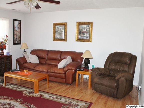 This little beauty is only 30 minutes or so from Redstone Arsenal. Peace and serenity on this lot with beautiful mature trees around! 3 Bedrooms and 2 Baths. Nice laminate flooring. Eat in area within the kitchen. Lots of light. Spacious living room with ceiling fan! Master bedroom has private bath.