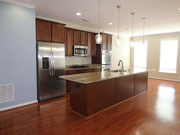 Stunning Townhouse with Entertaining Space! Enjoy an Open Concept Main Level featuring a Gourmet Kitchen with a Large Granite Island, Pendant Lights, and Stainless Steel Appliances. Step out onto the Trex deck, ideal for any occasion with its built-in lights. The entire home has been freshly painted in modern, neutral tones, complemented by Bali wooden blinds on all windows. Upgraded lighting fixtures adorn both the kitchen and bedrooms. Plus, benefit from an Extra-Large Garage extension equipped with ceiling-mounted racks for ample storage.