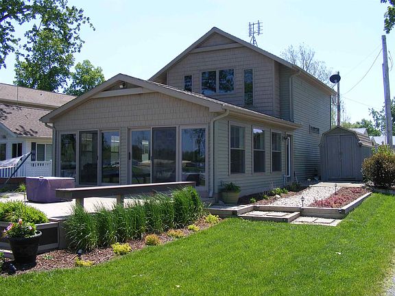 A MUST SEE! BEAUTIFULLY DECORATED TURN-KEY LAKEFRONT home, which is basically a six year old home with an open concept! It includes ALL TOP GRADE appliances. Dishwasher is a double stack washer designed for a heavy load. The kitchen has gorgeous hickory cabinetry with granite countertops, and glass tile backsplash. A breakfast bar including breakfast nook for dining, three wall-mounted televisions, front-load washer and dryer. Second floor consists of full bath, huge master bedroom, and guest bedroom. The sunroom/great room has windows and doors on all three sides for panoramic views of beautiful Lake Pleasant, which makes for a great gathering place for family and friends with tons of seating. Part of lawn is equipped with sprinkler system and also has a drip watering system for potted plants. Water heater is tankless on-demand system and heating and air conditioning are zoned. 22'x20' composite deck has full-length benches on opposite sides and LP gas firepit in center of deck plus a 10'x6' storage shed nearby. Property has great potential for rental income. Piers remain in channel year-round, however, buyer can put a dock on lakefront. Lake Pleasant is about 424 acres in size and is one of the cleanest, clearest lakes in Steuben County. It is a all sports lake with excellent fishing. Convenient access to I69 and 80-90 Toll Road.