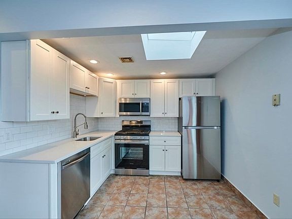 Stunning penthouse in prime East Boston location! This beautifully renovated top-floor penthouse offers an unbeatable location near the Airport T Station and East Boston's scenic Greenway. Bathed in natural light, this home is perfect for a first-time home buyer or a savvy investor, with a reliable tenant already in place at $2,600 per month. The unit boasts central air conditioning and a brand-new kitchen featuring sleek stainless steel appliances and elegant quartz countertops. Designed for both comfort and convenience, the layout is ideal for roommates, offering two spacious bedrooms, each accommodating a queen-sized bed. Additional highlights include an in-unit washer and dryer, extra basement storage, and a private deck where you can unwind with a morning coffee or evening wine while soaking in breathtaking city views.