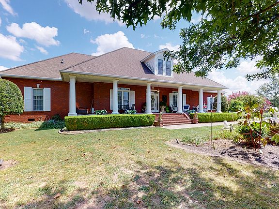 Stunning 3 bedroom 3 & half bath brick home featuring beautiful rocking chair front porch, impressive entry way, large office, large eat-in kitchen w/island & breakfast room, formal dining, ventless gas log fireplace in living rm, utility rm w/1/2 bath, beautiful back deck & yard for entertaining, 48x36 barn w/bunk house, 40x60 hay barn plus 60x24 attached shed, 36x24 tool shed & creek on 60+-acres! Gas heat downstairs, electric upstairs