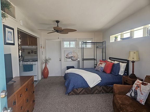 Located 2 blocks from the beach. Private gated entrance comes completely furnished. Full size kitchen and appliances (fridge/oven/stove/microwave) Separate private laundry room can be access on rear of the unit with additional storage space. All bed and bath linens provided plus kitchenware. Cute and cozy with old school beach charm. Double screen doors open up to the private patio inviting in the cool ocean breeze, Quiet neighborhood. Freshly painted and includes a full size bed, couch, dresser, smart TV and clothes rack. A separate 2 bedroom home with it's own private entrance and laundry is on the property. To ensure privacy units are separated by a 6 foot fence. A shared patio space is located in the front yard. This is an ideal space to meet the neighbors and take in the ocean views and sunsets. Fully furnished. Minimum three (3) month stay with utilities and Wi-Fi included. Small pets are ok with fee. No smoking on property.