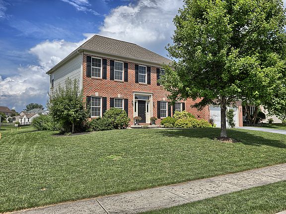 Finally, a home that is worth the wait. S&A Homes built this rich toned brick Colonial style home on one of the largest lots in Stone Knoll with a floor plan that satisfies with function and aesthetics. As you enter, you are greeted by a stunning vaulted foyer with recently updated hardwood flooring flooded by natural light. To the right is the perfect home office/craft/toy room with french doors; to the left is a large living room opening to the dining room featuring a custom tray ceiling, crown molding and chair rail. From there, the kitchen can easily accommodate any cook featuring an island, wood cabinetry, dark solid surface counters and ceramic tile flooring with oversized eat-in kitchen area, and adjacent laundry room (that's right, no lugging laundry up/down multiple levels!!!). Flowing into the family room, entertaining is a breeze with the gas fireplace and french doors leading to the patio. Upstairs the master suite is completely separate from all three bedrooms with the master bath showcasing a double vanity, soaking tub, shower and walk-in-closet (big enough to be a room of it's own!!). Existing 3 bedrooms share full bath and each bedroom is large enough to share if needed. If you still need more room, head to the unfinished lower level with a poured concrete foundation offering over 1400sqft to customize to your liking. There's even additional crawl space storage underneath the entire 2car garage! Everything about this home is comfortable and welcoming from the smart floor plan to the 9' ceilings, fresh paint, and tasteful updates throughout. Finally, love the outdoors again in your beautiful, level backyard or head to nearby walking paths, baseball or soccer fields only a few houses away, in a superb Palmyra location. Bonus: NO HOA but all the beauty and community feel of one! You'll look forward to coming home again, and again, and again!!