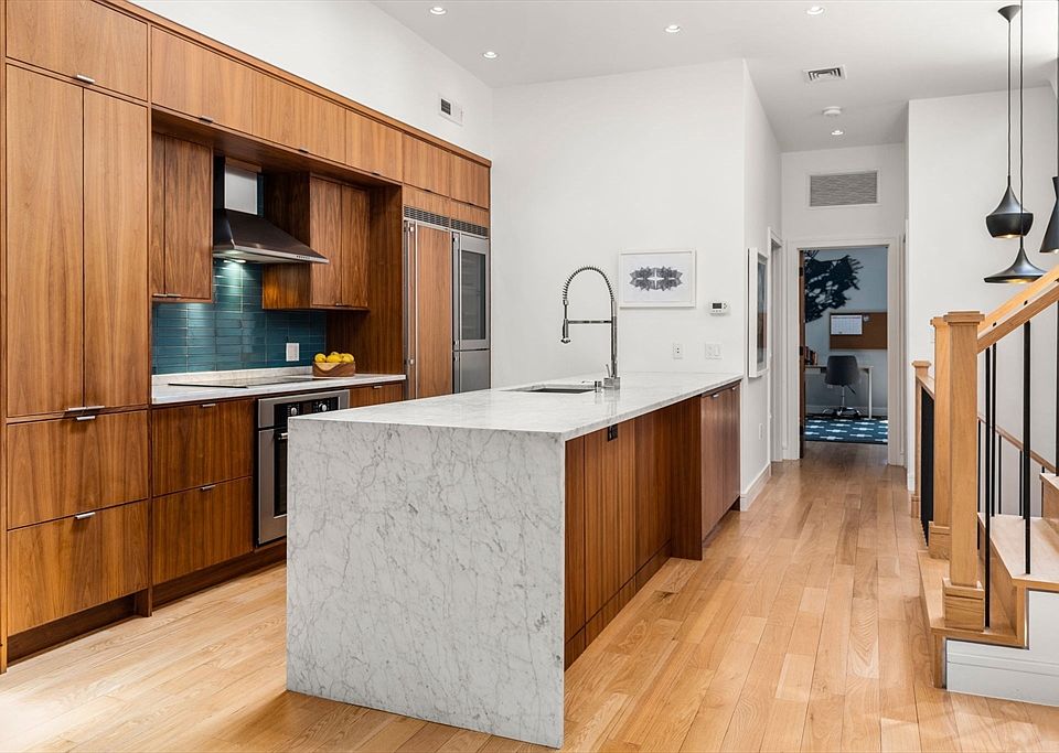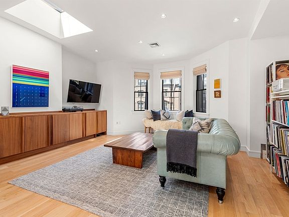 This fully renovated Back Bay penthouse duplex offers 2 bedrooms plus an office & 2 bathrooms with deeded parking and a stunning oversized private roof deck with spectacular Back Bay views. Historic elements like exposed brick seamlessly blend with contemporary designer finishes. The chef’s kitchen showcases custom walnut cabinetry, Carrera marble counters, Ann Sacks backsplash and high-end appliances. The expansive living room includes custom walnut built-in media cabinetry and a separate dining area. Ascend the chic staircase to your private roof deck with plantings offering a true urban oasis with lounge/dining areas, outdoor speakers, irrigation and an updated headhouse with sink and storage. The king-sized primary suite features custom walnut cabinetry, a walk-in closet and a spa-like bath with a double sink vanity. Flooded with natural sunlight, this home features high ceilings, central AC/heat, in-unit W/D, custom closets, recessed lighting and hardwood floors throughout.