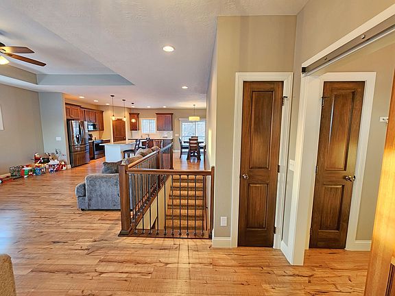 This 5 Bedroom, 3 Bathroom Ranch Style Walk-Out Home is located in a Cul De Sac Street and has a 3 Stall Finished and Heated Garage. On the Main Level, you will find an Open Floor Plan with a Large Living Room, Kitchen with Corner Pantry and Island, and Dining Area with Sliding Door to the Deck overlooking the Spacious Back Yard. In addition, there are 3 Main Level Bedrooms, to include the Master Suite with Walk-In Closet and 3/4 Bathroom with Double Vanity. You will enjoy the Laundry/Mudroom that is also on the Main Floor. The Lower Level hosts a HUGE Family Room and Wet Bar, perfect for hosting family and friends. You will also find 2 Bedrooms, a 3rd Bathroom, Spacious Storage Closet with Laundry Hook-ups, AND an Office! Call today to see for yourself!
