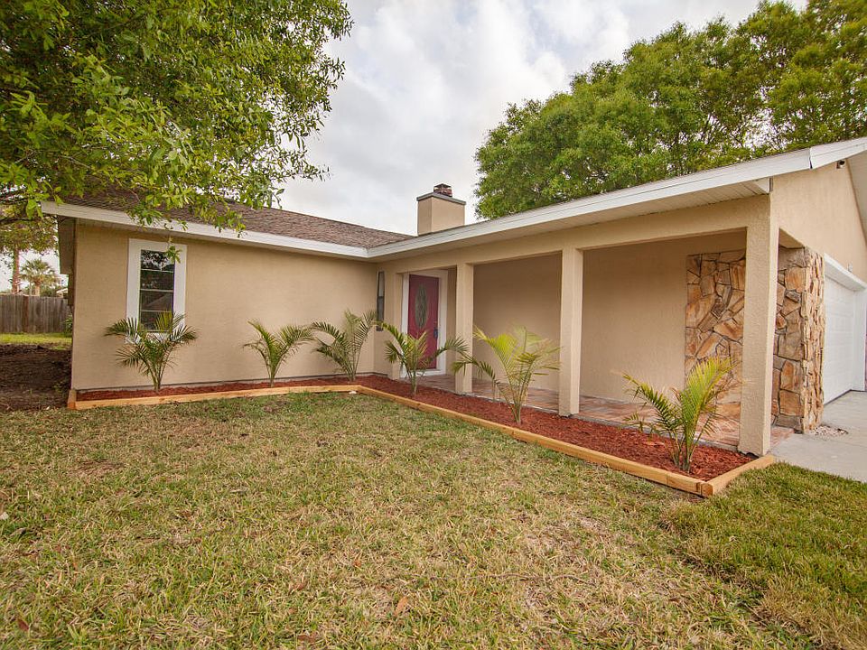 Welcome To Your New Home. Remodeled Palm Bay Home 3 Bedroom 2 Bath 2 Car Garage. Brand New Kitchen, Brand New Kitchen Appliances, Brand New Flooring Throughout, Remodeled Bathrooms, New Lighting & Ceiling Fans. Brand New Stucco On Exterior, Freshly Band Inside and Out. New A/C Condenser, New Hurricane Rated Garage Door and Opener. Bring The Offer This One Won't Last Long