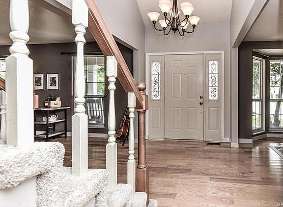 Spacious Home???.2,499 Sq Ft of Living Space???4 Bedrooms 2.5 Baths, and 3 CAR GARAGE! This Home Offers Great Curb Appeal with a Stunning Front Brick Elevation, Relaxing Front Porch & 10x19 Rear Covered Deck that Over Looks the Spacious Fenced Yard. Divided Bedroom Floor Plan Offers a Main Floor Master Suite and Luxury Bath with Double Vanities, Separate Shower & Whirlpool Tub. The Upper Level Features 3 Bedrooms with Walk-in Closets, New Carpet & Bonus 9 x 5 Dormer Area in 2 Bedrooms. You???ll Love the Hardwood Floors on the Main Level Complimented by a Coffered Ceiling Dining Rm, Spacious Living Rm/Office that Adjoins the Vaulted Great Rm w/ Wood Burning Fireplace. The Kitchen Offers Refreshed Cabinets with New GRANITE COUNTERTOPS & Breakfast Rm w/ French Doors & Convenient Main Floor Laundry. Other Highlights Include Zoned HVAC, New Roof 2012, Walk-out Lower Level & HSA Home Warranty. Great Subdivision with Convenience to Hwy 40 & Hwy K.