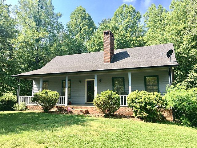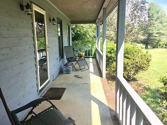 Very cute, move-in ready house on 9.48 wooded acres; country setting literally minutes from downtown Wilkesboro; large covered front porch; open living room/kitchen area; hardwoods on main, carpet in BR's, vinyl in baths, brick fireplace w/gas logs in living room; heat pump for heat/air; basement family room has wood laminate floors, gas wall monitor & sliding glass doors to large private backyard; vinyl flooring in basement combo bath/laundry; dble bsmnt garage; room for a garden, pool & great for long walks in your own woods. Frig, dishwasher, range, countertop microwave, gas logs convey