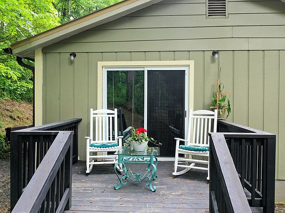This one level living home is in pristine condition with convenience to Sylva and Waynesville. The home has a beautiful open area with gas log fireplace, having been updated in 2007. There is privacy but winter views from the covered porch or the deck off the master bedroom. For the hobby farmer, there is a chicken coop on the property. Parking spaces are plenty. This property would make an excellent investment for STR's ( AirBnb, VRBO, etc) since there are no restrictions prohibiting it!