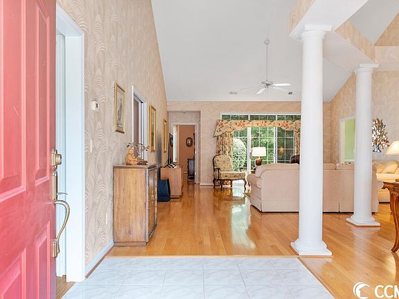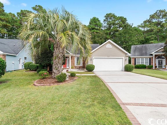 Nestled within the highly sought-after Myrtle Trace community, this exceptional home invites you in with a spacious front patio. As you step into the Southport floor plan, your attention is immediately captured by the cathedral ceilings and gleaming hardwood flooring. Positioned on a tranquil cul-de-sac, the residence boasts a generously sized kitchen adorned with granite countertops and stainless steel appliances. The expansive breakfast nook, featuring double sliding doors, provides seamless access to the patio and backyard. This thoughtfully designed home follows a truly functional split-bedroom layout, showcasing spacious guest bedrooms and a well-appointed guest bath. The front guest bedroom is enhanced by a palladium window overlooking three large windows, a vaulted ceiling, and ample closet space. A comfortably sized second bedroom currently serves as an office/guest room, equipped with a light tube, ceiling fan, and the convenience of pocket doors for added privacy. The impressive owner's suite, adorned with a vaulted ceiling, two closets, and a ceiling fan, welcomes an abundance of natural light through its expansive windows. The owner's bath features a luxurious soaker tub, a sizable shower, a vanity, and a linen closet. Stepping onto the back patio, accessible from both the kitchen and living room, provides an inviting space for morning coffee or gatherings with friends and family. Noteworthy features include the spacious over-sized garage, extended by an additional 6 feet, offering a convenient utility sink, pull-down stairs for  storage, and a back door leading to the back yard. Seamless access from the garage to the laundry room enhances overall convenience. The community's amenities are a highlight, making Myrtle Trace a vibrant 55+ community with a variety of planned activities. Residents can enjoy a clubhouse, a pool with a cabana, a bocce court, shuffleboard, and more. Golf enthusiasts will appreciate the proximity to several golf courses within a 5-mile radius. Myrtle Trace is conveniently located near Conway Medical Center, doctors, shopping, restaurants, Historic Downtown Conway, and all the attractions of the Myrtle Beach area, including its beautiful beaches. The time is ripe to make this remarkable home yours—reach out to your agent before this incredible opportunity slips away!