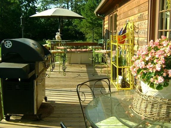 Log cabin on 1.34 private acres! Some features include: large front and back decks, open floor plan, hardwood floors, vaulted ceilings, wired surround sound in living area, large master with walk-in closet, fenced back yard, open kitchen with updated appliances, the list goes on and on!
