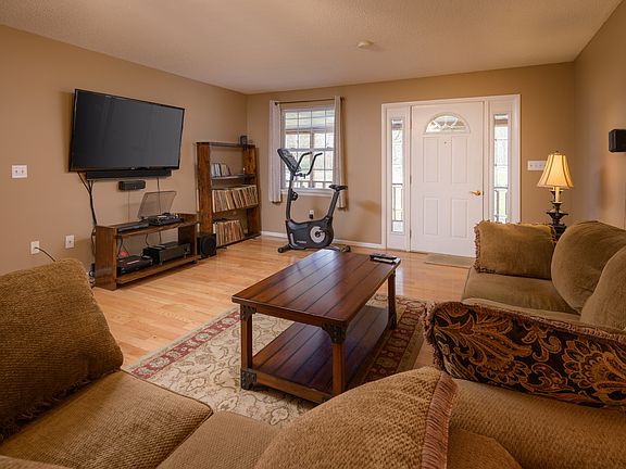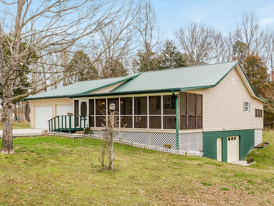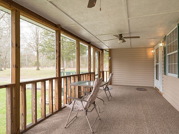 RANCH ON SECLUDED 5 ACRES - This cozy home is the getaway you've been looking for. The dual screened porches serve as the perfect places for relaxing evenings or your morning coffee. When you enter the home, you are greeted by solid hardwood floors and a large open living area. Meal time is a breeze in this kitchen with updated appliances, island work space, and spacious dining area. 2 bedrooms each with their own bathroom offers plenty of privacy. Downstairs, the finished basement is the perfect place for expansion. All of this on a beautiful and quiet five acres.