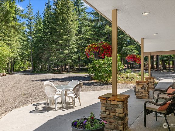 Nestled on 9 park-like acres, this beautifully maintained home provides the perfect getaway from the city. This cozy rambler offers a primary bedroom with attached office space, full bath, utility room and open living space with sleeping loft adjacent to the eat-in kitchen. Abundant outdoor living space including covered patio with hot tub just off the primary bedroom, large patio to enjoy days in the sun and a sheltered firepit. Tons of covered parking with attached 2 car garage and 2 car carport, 24x36 detached shop with heated workspace, and 4 car carport that could fit a boat or RV. Bungalow with 3/4 bath and kitchenette provides room for guests. Only minutes from Cle Elum, this property is an oasis for the outdoor enthusiast!