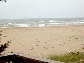Surf-n-Sand I Condominiums ** One of the nicest and well maintained condo projects in the area. 600 feet of sandy walkable beach right out your front door. Two bedrooms both with full baths, 1/2 bath downstairs, open living, dining and kitchen area, Breakfast bar separates kitchen & dining area, Laundry room with washer & dryer, all kitchen appliances included. Gas log corner fireplace with marble surround, Patio doors lead to a 16 x 10 brick patio on lower floor with a 16 x 10 upper deck off the master suite. 1 car garage located directly in front of unit, Drywalled & painted inside w/garage door opener. Condo is nicely furnished and all furnishing are also included. Excellent buy!!