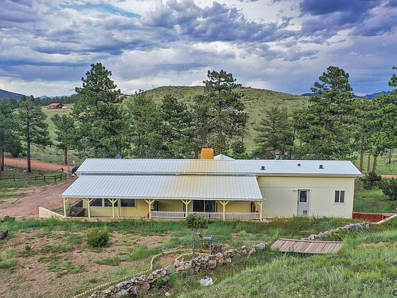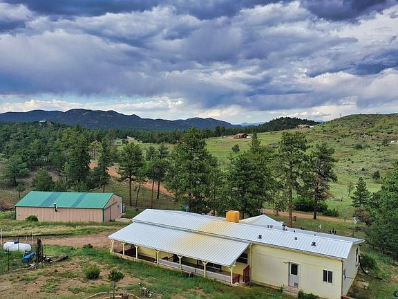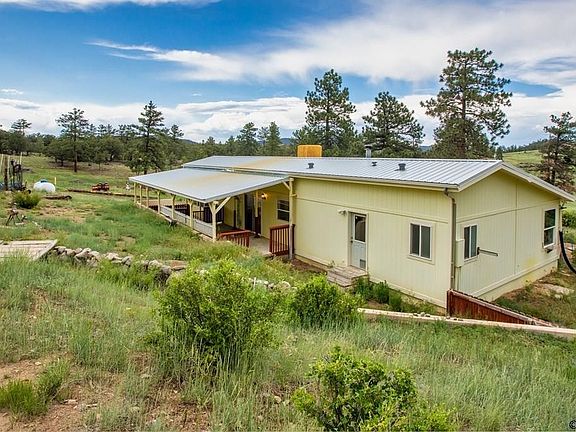Welcome to your mountain retreat! This 1809 sq ft, 3 bed, 2 bath manufactured home built in 1998 is nestled near the top of the Wet Mountains, halfway between Canon City and Westcliffe. The 5-acre property boasts a 30' x 50' metal workshop/ 4+ car garage with wood stove and an insulated, heated/cooled office, providing plenty of room for vehicles, toys, projects, and all your heart desires! The open-concept and split-bedroom floor plan features lofty 9' ceilings and streams with natural light from the ceiling-height and eyebrow windows that let in the tremendous mountain views. Master bedroom with en-suite 5-piece bath. Covered patio ideal for entertaining or relaxing, or hike up the side of the hill via several trails leading to hidden treasures, sculptures, benches, and forts hand-built from wood and stone for playful adventures in the back acres! Those with a green thumb will adore having the fenced-in garden area and a non-potable well that may be used for gardening! Forced air propane furnace and a free-standing pellet for the cooler months, and a roof mounted swamp cooler takes the edge off in the summer. Metal roof installed 2017, new septic tank and cistern installed 2024. Just 0.2 miles from the pavement of the county-maintained Copper Gulch Road, Glen Vista POA only $100 for private road maintenance. You'll never tire of the ever-changing skies, the fresh mountain air, and the absolute privacy of this mountain hideaway. Hurry and make it your own!
