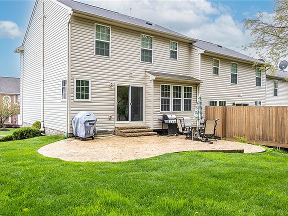 Large end-unit Townhome in Pine-Richland School District; Quiet cul-de-sac in desirable Willow Ridge; two story foyer with arched window; spacious living room with crown molding and gas fireplace; open concept entertainers kitchen with island with butcher block counter, large pantry and plenty of cabinetry; second floor master suite with walk-in closet, recessed lighting and updated en suite with shower/tub; two guest rooms are spacious and offer large closets; full guest bath, laundry and hallway storage on upper level; finished game room with recessed lighting; 2 car garage; large stamped concrete patio looks out over treelined backyard; newer carpet; HOA covers outside grass cutting, mulching, trimming, snow removal, walkways, outdoor painting and driveway sealing; quick access to Route 8, turnpike, shopping and restaurants.