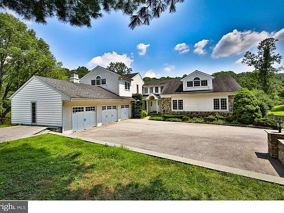 A dream house situated on a beautiful lot adjacent to Crum Creek with amazing views. Plenty of living space in the outstanding home. Enter into the 2 story family room with open balcony, fireplace, and a wall of doors overlooking the multi-level deck and rear yard. Gourmet Kitchen with all the amenities, Breakfast Room both with vaulted ceilings and skylights, exit to deck with retractable awning, built in grill. Formal Living Room with Fireplace, Formal Dining Room, Additonal first floor rooms could be used as bedrooms/office. First Floor Laundry. Full Finished Walk Out Basement with Fireplace, Bar, Doors leading to Round Brick Patio, additional rooms could be used as bedrooms/office/media room/in law suite/home gym. This home has endless possibilities and features including heated driveway, built in storage in garage, 5 fireplaces, Large deck and Built-in gar grill.