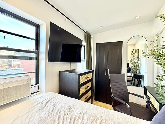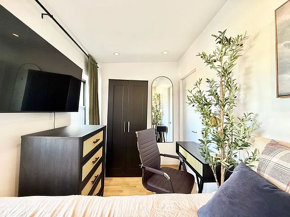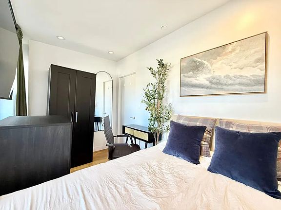A bright, furnished bedroom is available in a spacious apartment located in a prime Fort Greene neighborhood at Dekalb Avenue and Vanderbilt Avenue. The room is 90 sq ft and comes equipped with a bed, HDTV, AC, dresser, desk, chair, Wi-Fi, and a large closet. The apartment features an in-unit washer/dryer and access to a shared rooftop. Dekalb Avenue is a walker's paradise, renowned for its hip eateries and local shops. The neighborhood is vibrant, with cafes, restaurants, and bars just a 1 to 3-minute walk away. Fort Greene Park is a mere 4-minute walk, and Prospect Park is a 20-minute walk. Utilities & Fees Utilities: $165 per month (covers all utilities) Monthly Cleaning: $30 One-time Preparation Fee: $175 (for inspection, cleaning, and administration) Amenities Washer/Dryer: Yes, in-unit Balcony / Terrace: Rooftop Air Conditioner: Yes TV: Yes High-Speed Internet: Yes Bathrooms: 1.5 Bedrooms: 3 Location & Commute Subway: 4-minute walk to the G train Commute to Manhattan: 19 minutes Address: 251 Dekalb Ave, Brooklyn, NY Lease Terms & Requirements Lease Length: 12-month minimum lease Agreement: Individual lease agreement per tenant Income Requirement: 40x rent in annual income Credit Requirement: 680+ credit score Proof of Income: 2 months of bank statements plus 2 months of pay stubs (4 if biweekly) Identification: Valid government-issued photo ID Rental History: Landlord reference + proof of rent payments Guarantors Accepted: Must provide all the above documents + most recent tax return (rent payments excluded)