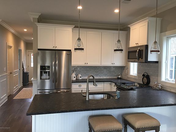 BEAUTIFUL NEW CONSTRUCTION AT AN AFFORDABLE PRICE! This Red Bank home has all the bells and whistles and is just a 10 minute walk from the Train Station. Luxurious finishes include a gorgeous white kitchen with SS appliances, custom moldings throughout, great room with sliders to yard, 4 bedrooms, 3 fabulous bathrooms with beautiful cabinetry with marble tops and Kohler tubs, wide plank flooring throughout, solid masonite doors, closet organizers in all closets, 9 ft ceilings first floor, full finished basement, Anderson windows, Thermatrue front door, Cedar Impressions siding, stone accents on Rocking Chair front porch and lovely yard. A MUST see. Value and Luxury all wrapped up in one adorable home!!