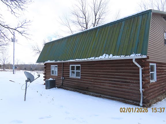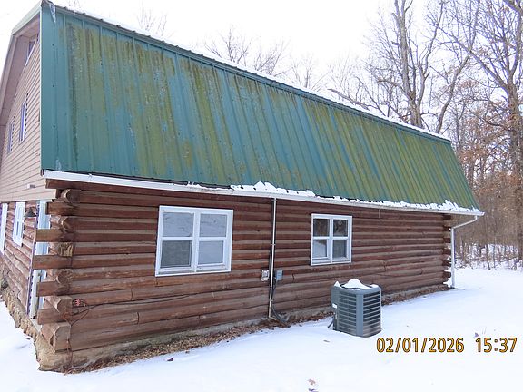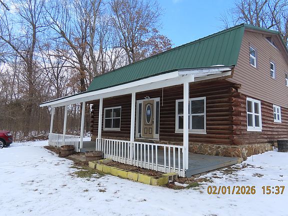 Log cabin 2 story home with four bedrooms, two bathrooms, detached shop. 2.9 acres. the shop is approximately 30 x 30. Covered front porch.
