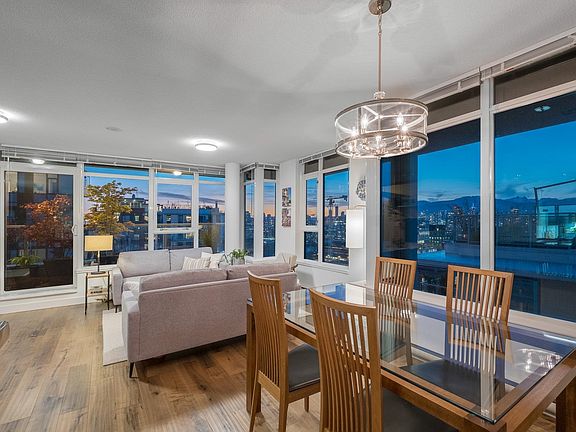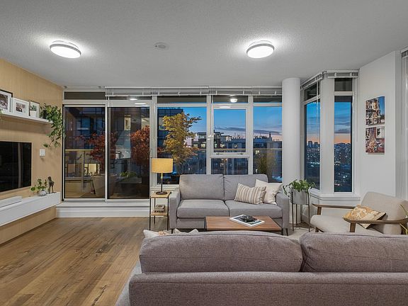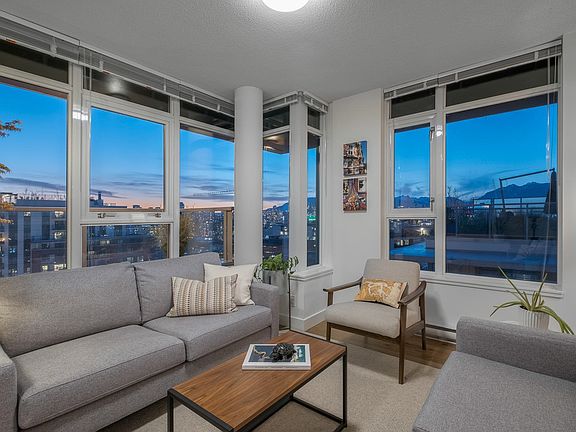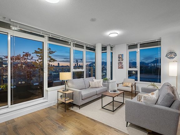 Stunning Roof Top Patio at The District. This fully renovated 2-bedroom plus nook home exudes pure elegance. This beautiful suite boasts over 1,200 sqft of living space, showcasing a perfect blend of style and functionality. Enjoy the breathtaking views of False Creek and Downtown Vancouver from your private 800 sqft rooftop terrace - a rare find in the city! Featuring including two side-by-side parking stalls, ample storage space, and a gas hook-up on the patio. Unwind in the spacious and open living area, ideal for hosting gatherings with friends and family. Both bedrooms boast walk-in closets, providing ample storage space. The building is equipped with a fully equipped gym, party rooms, and a playground. The suite is pet friendly and rental friendly.
