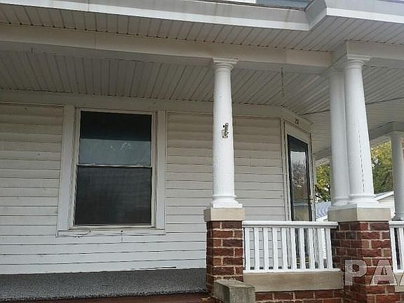 Charming home with wrap -around front porch. Exterior paint applied in fall. Four bedroom, 1 1/2 bath with detached 2 car garage and separate shed. Vinyl siding. With Repairs. ON LINE AUCTION IN PROGRESS