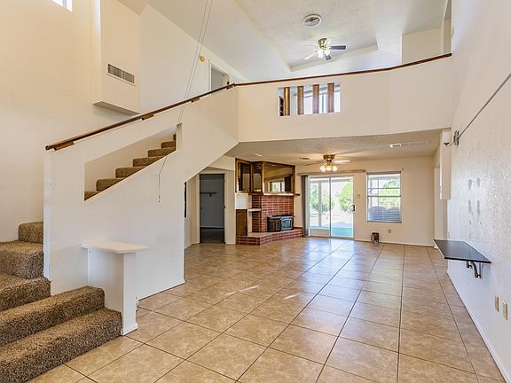 $5,000 seller credit offered! Come out today to tour the over 2200 square foot 2 story home located right on the fairway of Desert Lakes Golf Course. The perfect home for casual, fun get togethers, the main floor enters into the spacious living room/dining area with views of the golf course. The large, updated galley style kitchen is adjacent and features newer cabinets, butcher block counters, subway tile backsplash, stainless appliances, and a breakfast bar. The primary bedroom suite is located on the main floor and offers a giant walk-in closet and en-suite bathroom with jet tub, separate shower, double sink vanity and lots of cabinets for the storage you need. Also on the main floor you will find a generously sized laundry room and a ½ bath. Then head upstairs to the multi-purpose loft room. With a built in wet-bar this open area allows for additional living space and leads outside to a large deck where you can enjoy mountain and golf-course views. The 3 additional bedrooms and another full bath are also on the 2nd floor. Other amenities are the homes refrigerated central air conditioning and heating (5 ton unit was installed n 2020), an oversized 2-car attached garage comes with a moveable cooler unit, and the large ½ acre lot allows for plenty of additional parking room (even park your RV!). All plumbing has been upgraded to PEX and the carpet in primary bedroom and stairs/landing was new in Feb 2024. Take a look at the 3D tour and contact your preferred Realtor to learn more and schedule a showing.