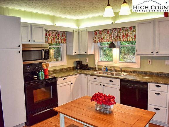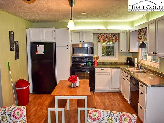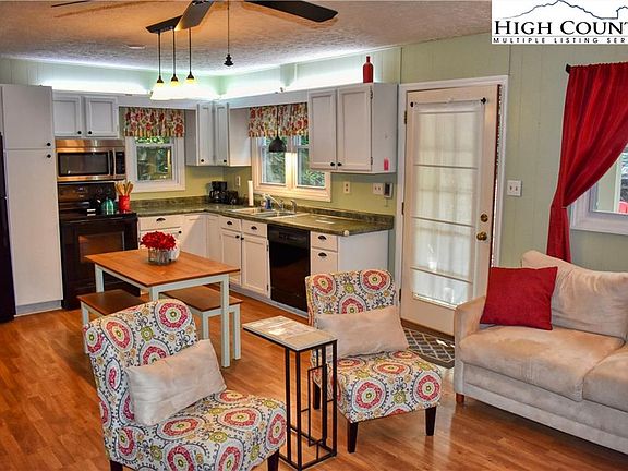 Adorable three-bedroom three-bath cottage located in Linville Land Harbor. Main level features an open kitchen, living and dining area. Kitchen cabinets have recently been painted. Living area offers a gas fireplace that heats the home. Master bedroom has a private remodeled bath with walk-in shower, stacked washer/dryer, and deck access. Guest bedroom also has a private full bath with barn style door and walk-in shower. Generous sized covered back deck and covered front deck. The lower level serves as an additional bedroom with full bath and storage room. Parking for 2 cars in the front of the home, additional parking in the rear. Roof replaced in 2016. Furnishings are negotiable. Linville Land Harbor has a one-time initiation fee of $4500.