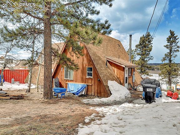 Welcome to your mountain retreat in Divide, Colorado! Nestled amidst the majestic peaks, this charming A-Frame home offers a perfect blend of rustic charm and modern comfort. As you arrive, you'll be greeted by the tranquility of 2.9 acres of pristine mountain property. The sweeping mountain views will leave you in awe, providing a backdrop of natural beauty that changes with the seasons. Step inside, and you'll immediately feel the warmth of the wood burning stove, creating a cozy ambiance perfect for chilly mountain evenings. The open-concept living area is bathed in natural light, courtesy of large windows that frame the breathtaking scenery outside. This home features two bedrooms, providing ample space for relaxation and rest. The master bedroom boasts stunning mountain views, ensuring you wake up to the beauty of nature every morning. With 1.5 bathrooms, including a convenient half-bath on the upper level, you'll enjoy both comfort and convenience. The kitchen opens up to the living room allowing for meal preparation while entertaining guests and family. Imagine sipping your morning coffee at the breakfast bar, surrounded by the serene beauty of the mountains. Attached, you'll find a two-car garage, providing shelter for your vehicles and additional storage space. Two storage sheds offer plenty of room for storing outdoor gear, gardening tools, or supplies for your mountain adventures. Whether you're seeking a peaceful retreat or a basecamp for outdoor exploration, this mountain property in Divide, CO, offers the perfect escape. Don't miss your chance to make this idyllic A-Frame home your own and start living the mountain lifestyle you've always dreamed of. Schedule your viewing today!