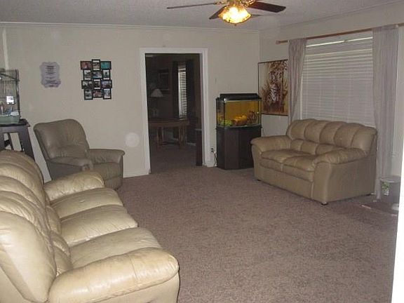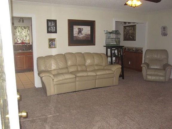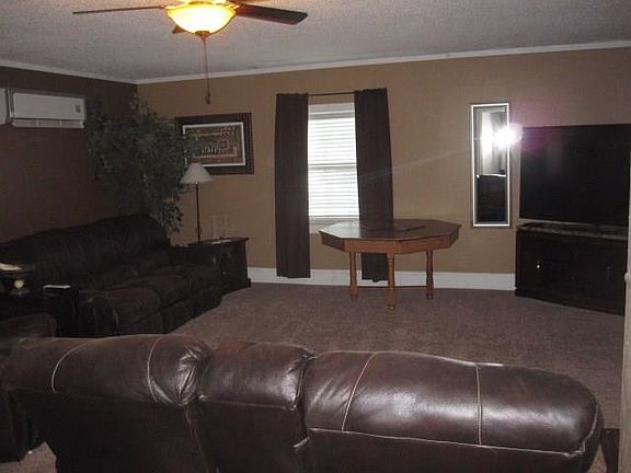 3 bedroom, 2 bath with 2 living areas and large eat in kitchen. Energy efficient with wind turbine in back. Covered front and back front porches with large trees. Basketball court, covered storage for recreational vehicles, one car garage with concrete floor, chicken coop and cellar.