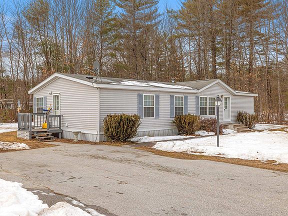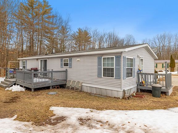 Skyline Oak Manor double wide in beautiful Deer Meadows Park. Located close to Contoocook Village and a bundle of trails for 4 seasons of recreation. This corner lot in the back of the park is a great location! Pets? No problem! You may have up to 2 dogs (see rules for restrictions) and allow them to exercise in the yard (fenced or on leash). Nice open concept floor plan with living and dining areas in the center and bedrooms on the ends. Nice laundry/mud entry, primary bedroom with walk in closet and large private bathroom featuring jetted tub and separate step in shower. Bedrooms 2&3 and the additional bathroom are on the other side of the living space for privacy. Paved driveway can park up to 4 vehicles. The décor is vintage 1999 but that gives you a great opportunity to make it suit your own taste.