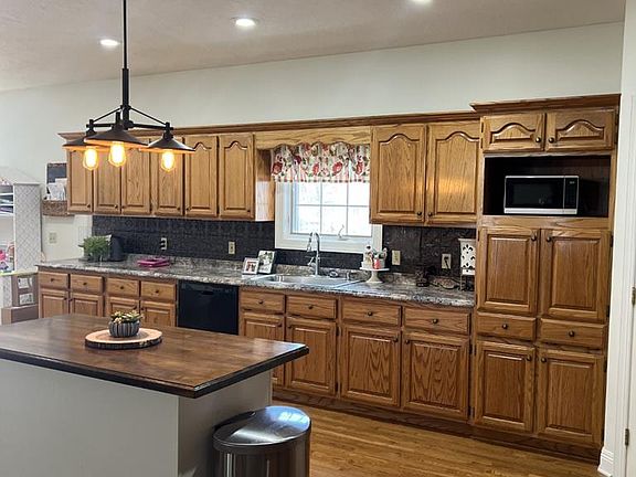 A fabulous country setting is where you will find this 2 BR 2 Bath home situated but it is actually only minutes from town. Upon entering, you will love the open concept with hardwood floors, living room with a fireplace and gas logs, work island in the kitchen and a huge dining area with a great view of the backyard and stocked pond. Spacious master bedroom with a walk in closet. The den/playroom can also be used as a 3rd bedroom. Large back deck. The 40x30 detached building has a shop area, a storage area plus guest quarters with 2 bedrooms, 1 bath, living room and a kitchenette which the sellers have used as an Airbnb. The lean to is great storage for your tractor, boat, etc.