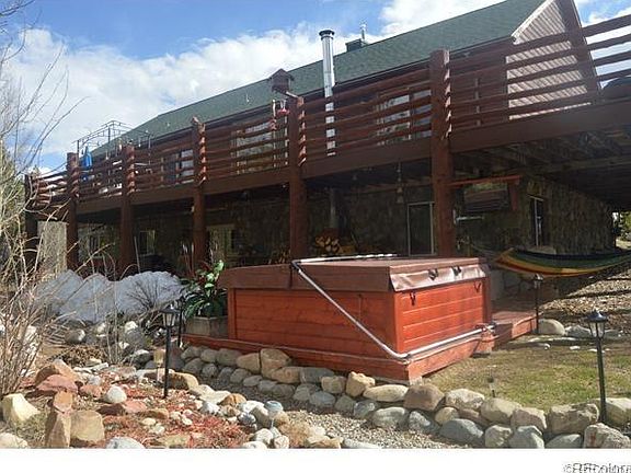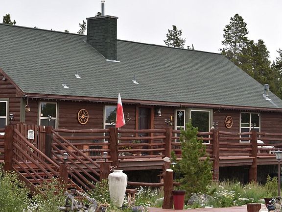 Country living at its best. Three acres situated at the top of a hill, surrounded by trees, with views of Mt. Sherman. Grounds include large fire pit, garden area, hot tub, wrap around deck, two storage sheds and a 1200 sq.ft. heated, airconditioned workshop. Once inside, custom finishes abound. You'll find three bedrooms upstairs and two in the walkout basement. The master bedroom includes a 5-piece bath and private access to the deck. The basement has radiant heat and is stocked with a custom designed bar, wood stove and sauna. This house has it all both inside and out. The HOA includes a private stocked fishing pond within walking distance.