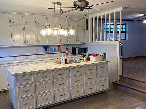 Estate. Home has so much space - could be 5 bedrooms with office too. Updates include newer roof (1 yr), water heater (4 yr) HVAC (1 yr), and some windows. Needs some TLC on hardwood floors. Kitchen is huge and updated with white cabinetry and island, charm glass fronts - with range, DW, Frig (2 yrs). Large bedrooms with walkin closets. 2 rooms upstairs with built-ins. 2 rooms downstairs with 2 storage rooms too. Office cubby room. Detached extra high garage with window and electricity. Tandem carport. JUST OBTAINED Structural Letter Approval