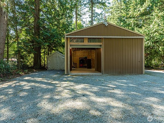 "Quality-built Home" in a forested setting offers true privacy on a shy acre, across from the water. The level lot opens to a sunlit meadow and beautifully landscaped grounds w/ fenced garden and potting shed. A gated entry welcomes you to an impressive 37'x24' shop w/ two 30-amp circuits for a welder and heater, perfect for the car enthusiast. A massive Quonset hut provides additional space for boats, RVs, or larger projects. A cobblestone pathway leads to your private bathhouse, a unique retreat designed for relaxation. The main home features a gas fireplace, loft, and thoughtful designer touches throughout. 5-Min to amenities. Ideal VRBO, private retreat OR build additional home offering a complete "Estate Package" with rare seclusion.