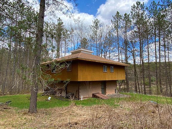 Built around 1992, this rustic cabin offers a unique and creative space for you to put the finishing touches on. Designed to resemble an early-settler blockhouse, the concrete-block dwelling has all of your basic amenities to start with, including 200 amp electric service, spring water, septic system, electric water heater, and is well-suited to have the potential to be heated with a forced air heating system, woodstove, or electric baseboards. Each level contains a square central room with an open space surrounding. The ground level contains a kitchen area with laundry, dining area, and full bathroom. Ascend the spiral staircase to the upper level, where you'll get a birds-eye view looking out to the surrounding countryside. This level is all open to be finished to your liking. The cabin is on a full basement containing the utilities and plenty of space for storage or a workshop. The 116+/- acres are mostly wooded with a varied terrain, extensive amount of road frontage on two roads, and stone walls and old barn foundations. The large pond is stocked with large-mouth bass and is surrounded by numerous blueberry, raspberry, and blackberry bushes. The large expanse of land is great for hiking, hunting, riding all-terrain vehicles, and is right on the local snowmobile trail network. Electric easements cross the property, creating trails and ease of access through portions of the land. Get away from it all and enjoy your weekends in the mountains, with ultimate privacy, outdoor recreation, and a large, quiet space.