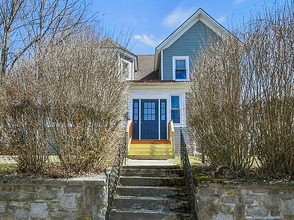 A corner spot to steal your heart! Located on a calm one-way street with walking trails & schools close by. A beautiful sun-kissed dining room for entertaining. Tons of natural lighting throughout. The layout flows nicely from the moment you enter the front door. Recently updated front steps & new vinyl siding this past year, a back entrance with coverage from the elements & automatic lights between driveway/garage & house. Two lovely sitting rooms & an enclosed 4-season porch in the front perfect for enjoying your morning coffee! Kitchen updated to stainless steel appliances 4 years ago, includes hook-ups for gas or electric ranges, though the current set-up is natural gas. All bedrooms are upstairs with a shared bathroom in the hall, the half bath is between 1st & 2nd levels. Lots of storage space in the basement with bulkhead access to outside. Recently had an energy company update insulation and replace back door. No work needed!