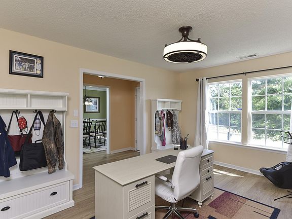 Immaculate single owner home with master on main and huge theater room upstairs! This one shows beautifully! Large treelined backyard and green space across the street. This home is move-in ready and has plenty of room for the whole family. Home theater room has raised platform, 150 inch screen with projector and surround sound that all conveys with the home. Fully equipped alarm system integrated with phone app. Don't miss the secret storage closet in the office! One year home warranty included.