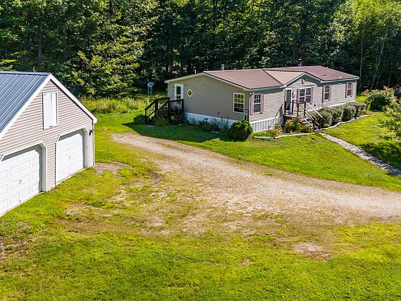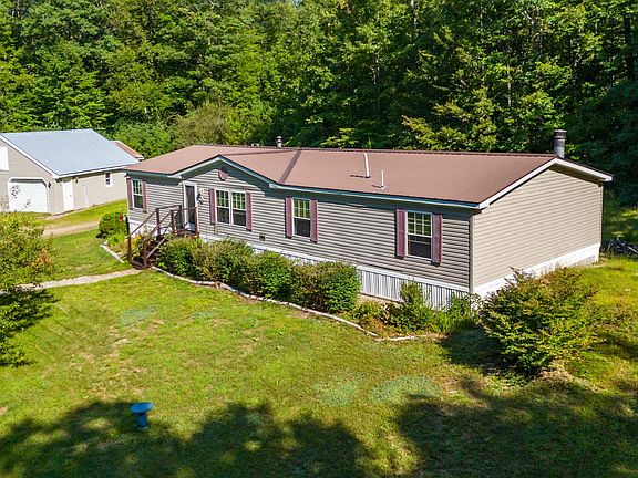 COME CHECK OUT THIS VERY WELL CARED FOR 3 BEDROOM 2 BATH MANUFACTURED HOME SET ON 3 VERY PRIVATE ACRES. Bright kitchen with more than enough cabinets, new counters and newer appliances. Separate dining room, sunny, large living room. Family room with wood fireplace, rear porch overlooking the woods. Spacious primary suite with full bath (includes garden tub and shower). Many new improvements like new heat, new central a/c, newer metal roof and all newer flooring throughout the home. Detached two car garage with storage above and rear shed. The screen house located at the edge of the forest is a wonderful place to sit and relax and listen to the babbling brook. Beautiful perennials. No visible neighbors. Located less than 10 minutes out to Route 16 but yet so secluded. Schedule your showing today!