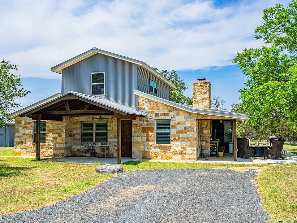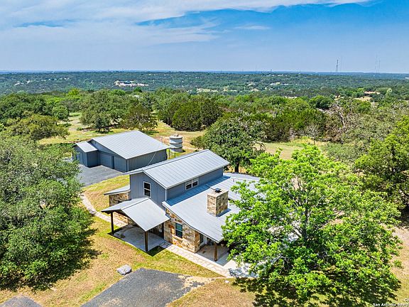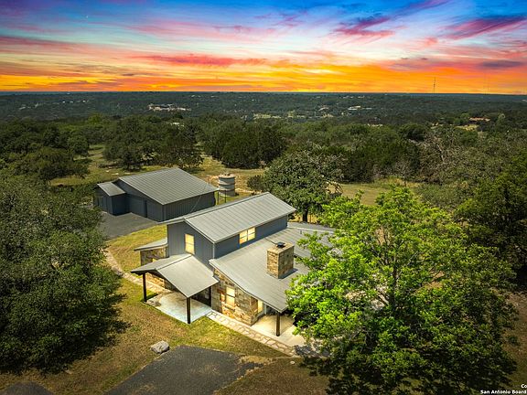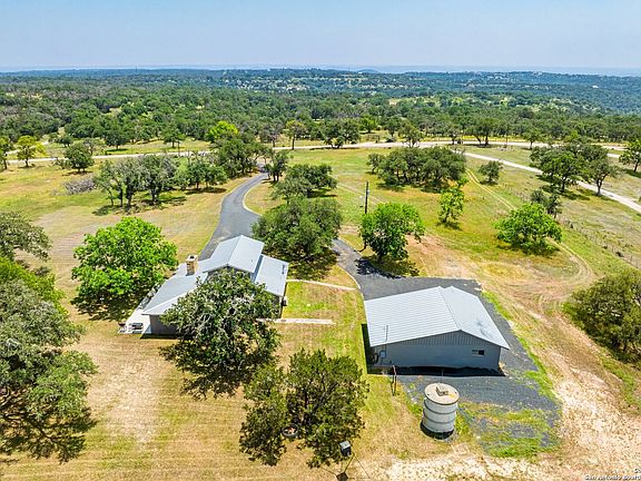 Nestled in the heart of the Texas Hill Country, this stunning unrestricted 10.35-acre property offers amazing views, vibrant sunsets, and serene privacy. Remodeled and expanded in 2016, this nicely appointed home now features additional living space, a new fireplace, an open concept kitchen, updated bathrooms, a larger primary suite, an extended laundry room and two covered patios. The renovation also included new siding, a new roof and all new windows! Attached to the 2-car garage stands a 345 square foot workshop with a half bath. This well-manicured lot is fully fenced and boasts solar- powered privacy gate and a recently resurfaced driveway. With its level acreage, this property offers you ample opportunities to add horses, livestock or build a barndominium or RV Storage. Come see for yourself and experience the breathtaking views, cool winds on the patio, and the gorgeous sunsets!