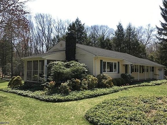 A MUST SEE fantastic value in this 3 br 2 ba ranch in one of the top school districts in New Jersey! Gently rolling serene yard, beautiful flower gardens framed by pine trees. NOT TO BE MISSED! Kitchen w stainless appliances, three-season sun porch, huge basement with finished area and work area with loads of storage! Newer windows, siding, roof, and septic. Newer hot water heater and furnace. Hardwood floors and loads of sunlight! Fireplace in living room is currently sealed and not in use.