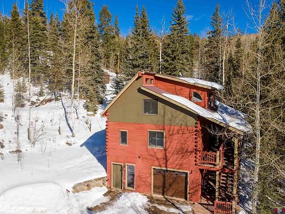 Spectacular log sided home with breathtaking lake and mountain views. This beautiful log home is less than 5 minutes to the world class Purgatory Ski Resort and is nestled on just under an acre. This is the perfect year round playground with fishing, kayaking and paddleboarding in Columbine Lake in the summer as well as world class mountain biking destination. In the winter enjoy downhill skiing, cross country skiing, snowshoeing and snowmobiling! This home is right across the street from Columbine Lake with easy access close to the entrance of Lake Purgatory subdivision. This incredible home is being sold furnished with very high end furniture and would be a perfect 2nd home and vacation rental. There is also a creek running through the property. This well cared home has had many recent updates including exterior paint, water well pump, hot water heater, light fixtures, washer and carpet in the bedrooms and on the stairs. There are gorgeous hardwood floors in the open concept living area, dining area, kitchen kitchen. The gourmet open concept kitchen has beautiful hickory cabinets, a built-in desk area, a gas cooktop and a convection oven. A large stone fireplace is the focal point in the living area and is a great source of heat along with back up electric baseboard heat and there are fantastic views of the lake from the bay window in the living area. There is a patio door in the living area leading out to the deck providing the perfect place to relax, unwind and enjoy the views, the starlit sky and for outdoor entertaining. The luxurious master suite has incredible views, vaulted ceilings and a sumptuous master bath with a custom designed shower with a curved glass block wall, double sinks, solid surface countertops and a large walk-in closet. There is a spacious loft area that would make a great office or second living area. The second bedroom is on the lower level with its own private patio door that opens onto the covered deck. There is a large mudroom adjacent to the garage. The brand new mudroom has a queen size Murphy bed and a wall of custom maple cabinets perfect for accommodating extra guests. There are 2 maintenance free covered decks including a patio on different levels that have incredible lake and mountain views. The design of this home allows for many different options including several areas for offices as well as room for expanding the home. If you are looking for privacy, peace and quiet, amazing lake and mountain views and easy access to the ski resort this home is for you!