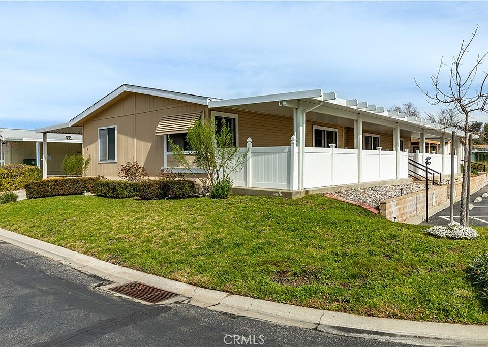 RETIRE IN PASO ROBLES WINE COUNTRY! Discover timeless charm in this spacious manufactured home on owned land, situated in the coveted 55+ community of Quail Run, Paso Robles. Boasting 3 bedrooms and 2 bathrooms, this light and bright residence features a brand new permanent foundation, qualifying it for regular financing. Relax in the luxurious walk-in tub / shower, relish the brand new carpets underfoot, and enjoy peace of mind with the recently completed Section 1 pest clearance. Step onto the generous, partially enclosed verandah, protected by a low maintenance aluminum patio cover, and fencied, that runs the entire length of the home out front. It just begs to be decorated and is perfect for tranquil moments or entertaining guests. A covered carport and built-in storage shed completes this lovely home. With abundant guest parking nearby, this home offers a blend of vintage charm and comfort in a sought-after location. The Quail Run Community offers great amenities for the discerning buyer, including a gated entry, plenty of guest parking, a large clubhouse, pool and spa, tennis courts, a pickleball court, RV storage (when space permits) and regular, fun social events. Shopping, restaurants, and other services are nearby. Downtown Paso Robles, with all it has to offer, is just about 3 miles away. Don't let this charmer slip you by. Call your Realtor today!