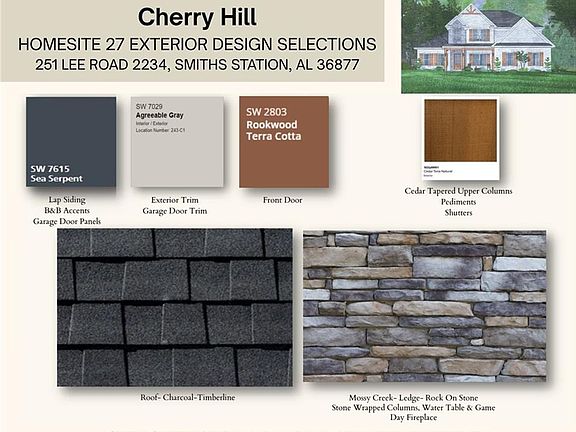 Welcome to Cherry Hill, a Hughston Homes Community, nestled in the heart of Smiths Station, Alabama, designed with both convenience and luxury in mind! Our Oakwood A Plan is Absolutely Stunning Inside & Out! 3033 Sq. Ft. of living space, Owner’s Suite on the Main Level, 3 Bedrooms Upstairs, 3.5 Baths, Bright Two Story Foyer, Formal Dining Room w/ Tons of Detail. Generously Sized Great Room with a wood-burning fireplace. Open Kitchen features Stylish Cabinetry, Granite Countertop, Tile Backsplash, Stainless Steel Appliances, electric cooktop, wall mount microwave/oven, stainless vent hood, and upgraded dishwasher. The Large Island is open to the Breakfast Area. Owner’s Suite on the Main Level w/ Trey Ceilings & Tons of Natural Light. Owner’s Bath w/ Tile Shower, Garden Tub & Huge Walk-in Closet. Owner’s Entry Boasts our Signature Drop Zone, the Ideal Catch-all. The half Bath is conveniently located for Guests. Upstairs, you will find the Media Room, creating the Perfect 2nd Living Space. Additional Bedrooms are Spacious with Ample Closets. 2 Full Baths Upstairs. Enjoy Vinyl Plank Flooring throughout Main Living Areas & Tons of Included Features. Two Car Side Entry Garage & Our Signature Gameday Patio w/ Outdoor Fireplace. Elevate your lifestyle with Home Automation, Keyless Entry, Video Doorbell, Automated Front Porch Light, and more!