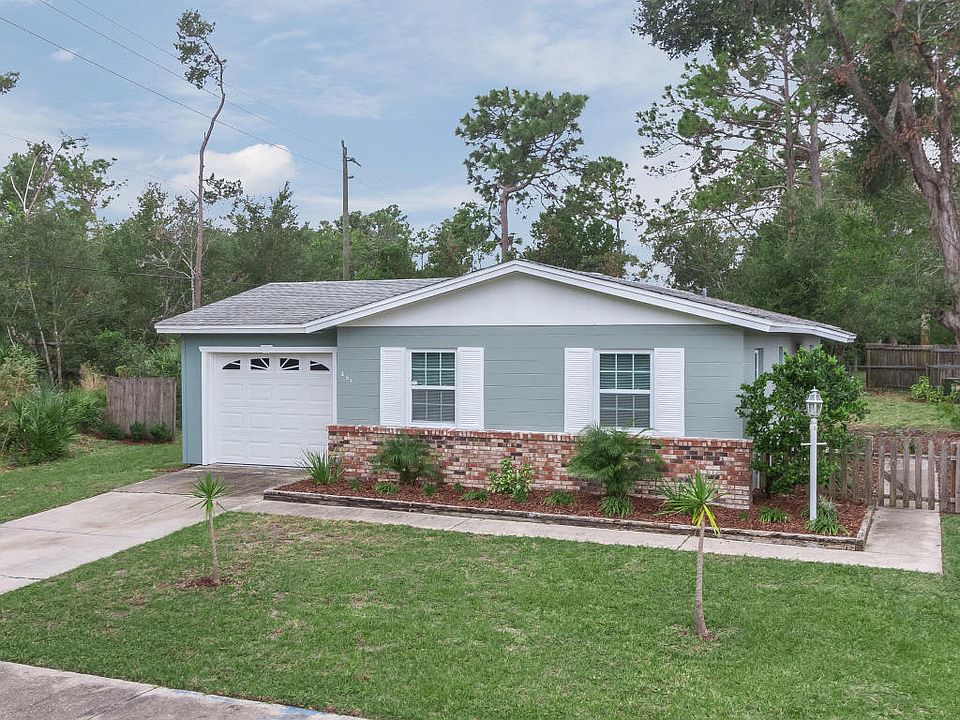 This adorable 3 bedroom, 2 bath concrete block home has been completely renovated and updated from its baths and kitchen to its family room and front door. A split floor plan with plenty of room to grow and roam around in the very private yard at the end of a dead end road with beautiful pond across the street. Newer kitchen appliances, including washer and dryer, and a one car garage. Great little entryway with courtyard. A must see!