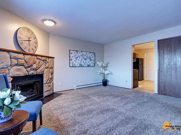East side location. Priced below 2020 tax assessed at $73,900 and June 2019 FHA appraisal at $73,000. Top Floor end unit with wood burning fireplace, Heat and hot water INCLUDED in the dues. Private washer/dryer, 1 car carport, Heated extra storage room. Secured entry building, Close to parks, JBER, shopping and trails/parks, South sun on deck, pets allowed,