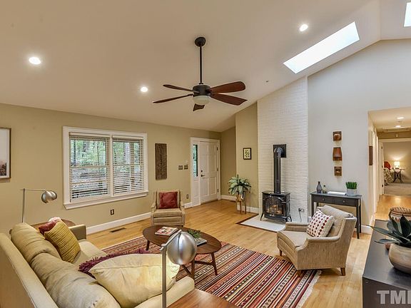 One-level living beneath a hardwood canopy located 10 mins from Carrboro and 15 mins from Pittsboro. This custom home on 2+ acres (mostly fenced) was built by well-respected local builder. With maple floors, skylights, wood siding, back-up generator, new carpet, new hot water heater and solid wood doors, it's hard to find this level of quality in this price point. Relax on the large screened porch, listen to the owls and watch for Piliated Woodpeckers. No HOA so bring your chickens, goats and bees.