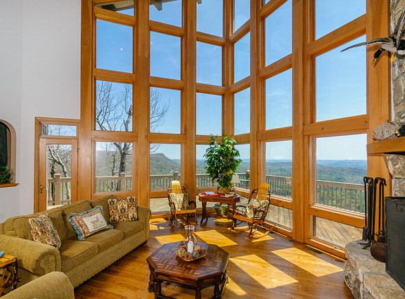 This high quality custom built home has one of Lake Toxaway's most spectacular views; it overlooks Lake Toxaway, Lake Cardinal, and 50+ mile view of multiple mountain ranges. Enjoy a breathtaking panoramic view from every room. The living room has cathedral ceilings with two floor-to-ceiling walls of windows and a massive, native stone, masonry fireplace. The gourmet kitchen has ample counter space, an island, a breakfast bar, a commercial gas stove with dual electric ovens and a view that makes cooking a delight. The master suite has the second native stone fireplace, a large walk-in closet, a private balcony and a spacious master bath with dual vanities, shower and jet tub with lake and mountain views. Also connected to the master suite is a sitting room/media room perfect for unwinding at day's end, The main floor also has a large men's den with a wet bar, room for a billiard table and room for lounging in front of the television or playing cards. Two arched doorways lead from the den to the screened outdoor kitchen overlooking the craggy stone faces Panthertail Mountain and the beautiful blue waters of Lake Cardinal. With a large outdoor fireplace and a 48 grill/rotisserie, one can enjoy the cool summer breezes or the brilliant colors of the October leaves. The screened porch has the sound of falling water from the custom-built waterfall that runs next to the porch and under the covered walkway to the two car garage. The second story of this home has two guest rooms with in-suite baths connected by a loft. This is a home in which friends and family will marvel at the vistas, comfort, privacy and mountain greenery.