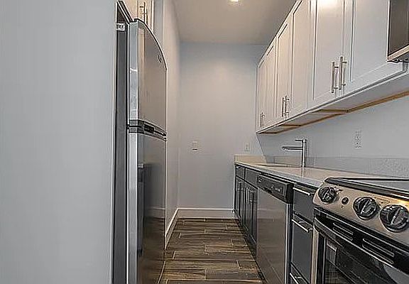 A brand-new building Large Wing 2 BR All apartments boast large windows and ample sunlight throughout, central A/C, ceiling fans, plenty of storage, and microwaves. Two-bedroom apartments also include dishwashers. Building amenities : Elevator Laundry room Rooftop Close to the Atlantic Ave L and the East New York LIRR station. Easy and fast commute to JFK!